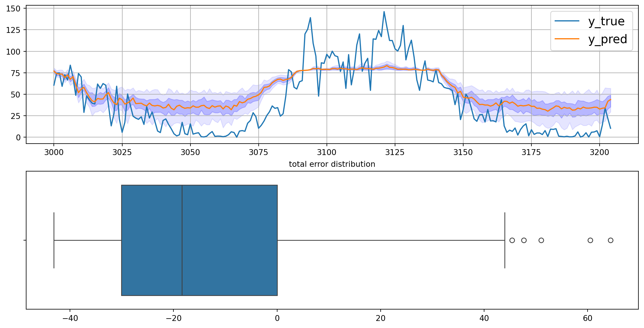 ax1.fill_between(np.arange(3000, 3000+len(y_true)), quantiles[1], quantiles[2], color='b', alpha=.2)