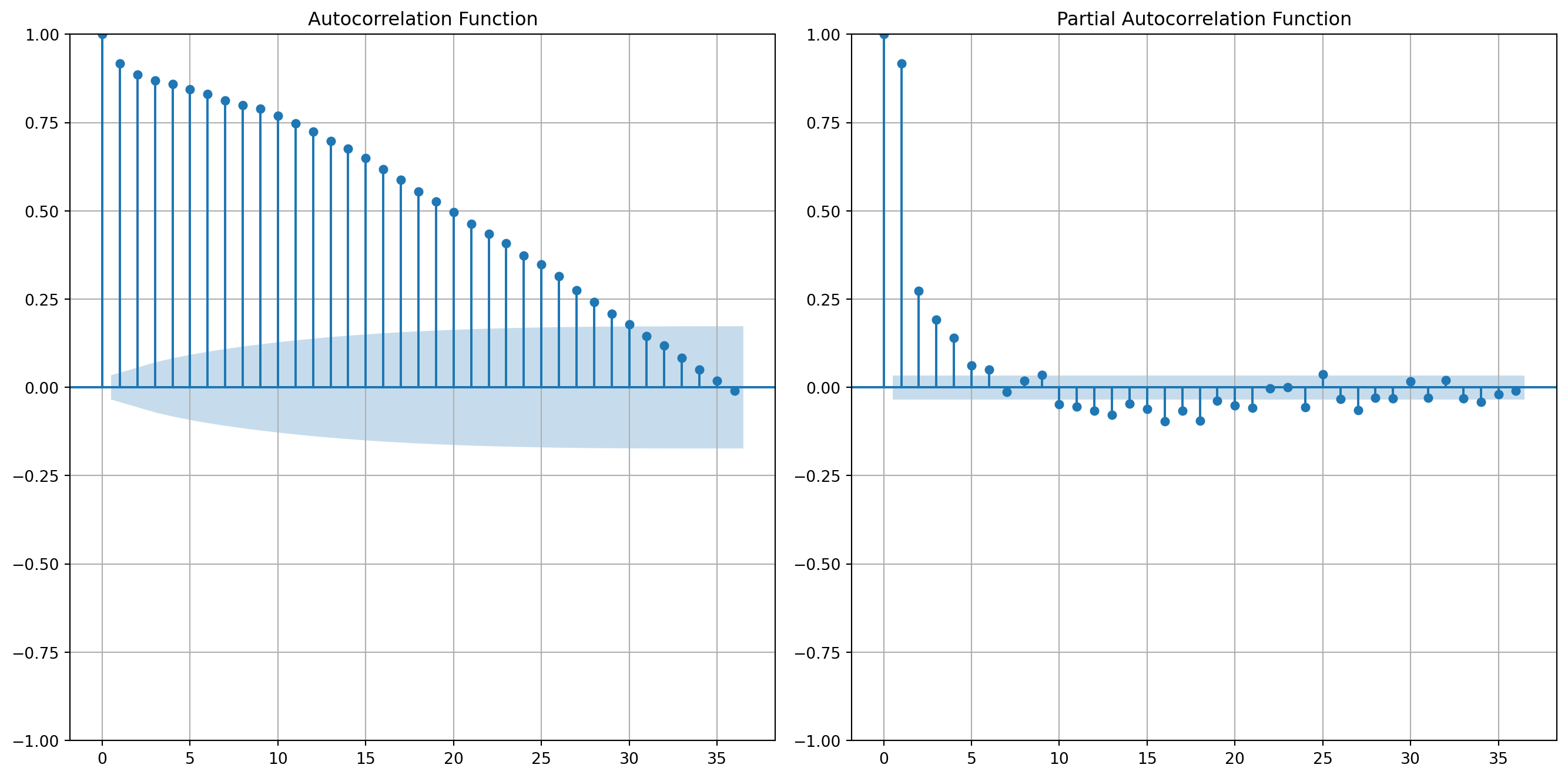 plot_pacf(df['normalized_sunspots'], ax=ax2, title='Partial Autocorrelation Function')