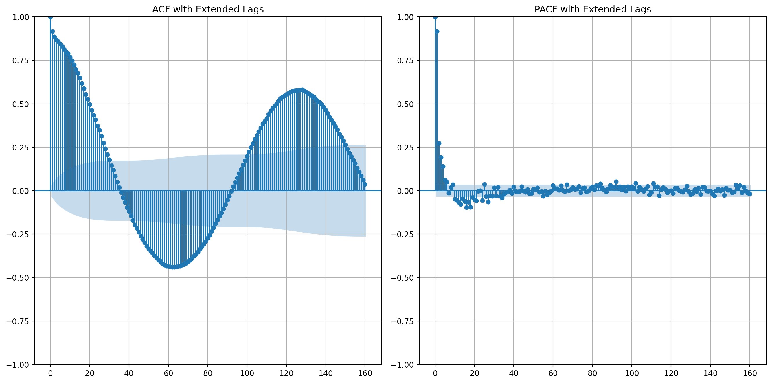 print(f"Seasonal min correlation: {lag_neg_corr}")Seasonal max correlation: 128